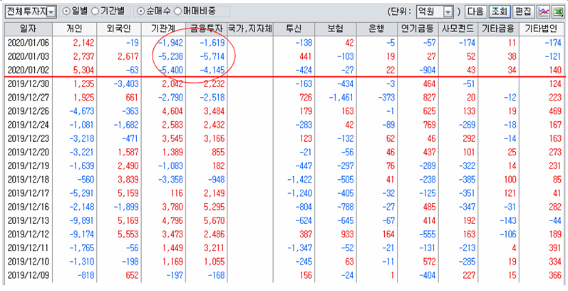 쥬라기: 연말을 앞두고 매도했던 개인은 다시 물량을 사들이고 있습니다.
