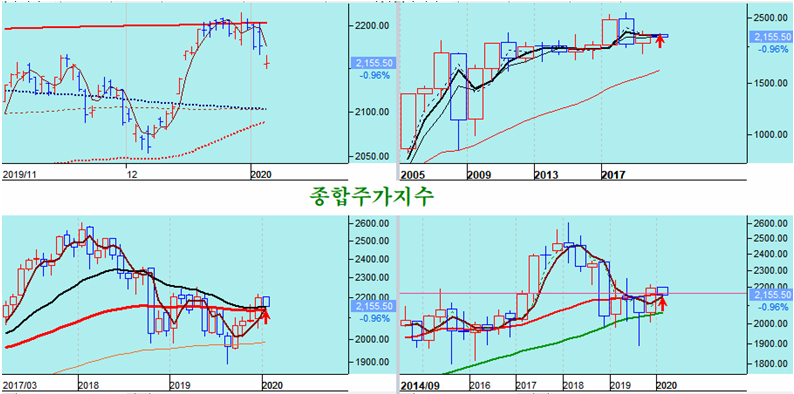 쥬라기: 종합주가지수는 월봉, 분기봉, 연봉이 모두 시가3선 매수권이 되었습니다.