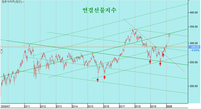 쥬라기: 연봉은 시가3선보다도 낮아져 있고, 월봉과 분기봉은 시가3선의 위치로,