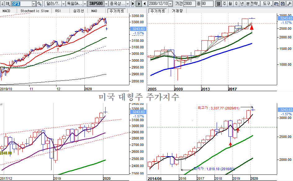 미국 증시나 기술주가 이격 조정이 필요한 시점에 중국 신종 바이러스의 확산으로 하락의 모멘텀이 되었다.