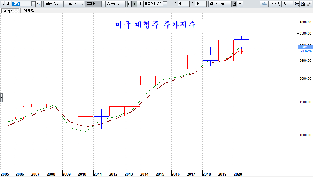 주가가 하락할 때는 코로나 19 폐렴이라는 심리적으로 가장 불안을 주는 재료를 활용하여 투자자의 심리적 불안감을 극대화하며 하락하였으나, 연봉으로 보는 주가에는 이런 심리의 흔적은 없으며 그저 경기와 기업 실적 개선에 대해 과속했던 주가가 정상적인 수준으로 회귀한 모습이다.
