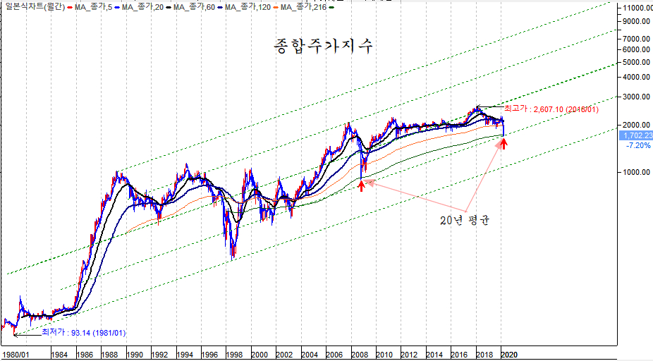 짧은 그림자를 비용으로 커다란 나무를 살 수 있다면, 그것은 다시없는 기회이다. 금융위기도 경제위가도 없지만 주가는 2008년 세계 금융이 마비되었던 리만브라더스 사태와 함께 20년 평균에 접했다. 어쩌면 향후 10년 다시 보기 어려운 투자의 기회가 될 것이다.