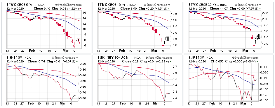 한편, 시장의 불안을 피하여 안전자산으로 과도하게 쏠리며 버블을 형성했지만 이번주 안전자산에서 탈출하는 러시가 이어지며 국채 가격이 3일째 하락하고 국채 수익률이 오르고 있다.