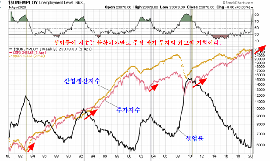 망해서 도태될 기업을 골라 피할 수 있거나 망하는 기업의 영향을 받지 않는 전략을 가져가는 사람에게는 실업률이 급증하는 시기야말로 장기투자의 최고의 기회이다. 그리고 지금 세계의 실업률은 역사적으로 높은 시기이다.