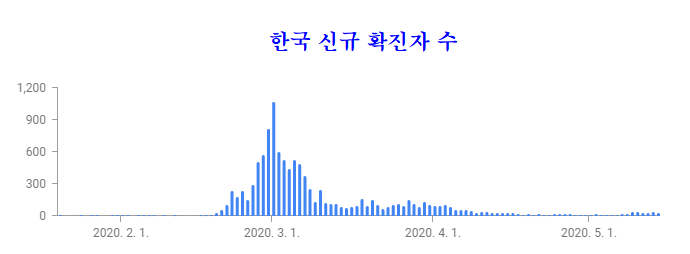한국은 빠른 시간에 코로나를 통제했으나, 계획한 대로 5월 6일부터 생활속 거리두기를 하지 못하고 5월 1일부터 앞당겨 활동을 함으로써 재차 전파가 이어지고 있으나 현재의 방역 능력으로 확산을 통제할 듯 하다.