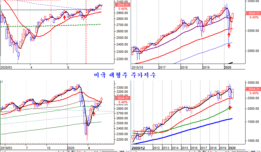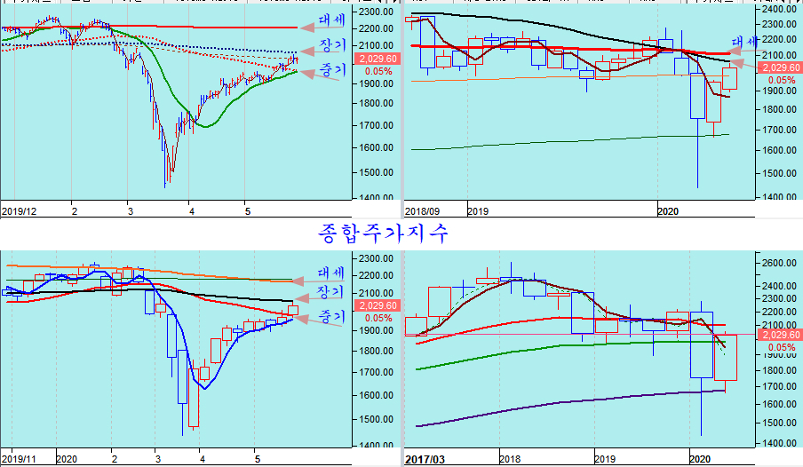 4월 중순 이후 5주에 걸친 숨고르기 국면과 함께 상승의 힘이 강하게 비축되어 있어 앞으로 60주 추세 기준인 60주 평균선과 대세 추세 기준인 60월 평균을 넘어 상승 추세가 이어지기 쉽다.