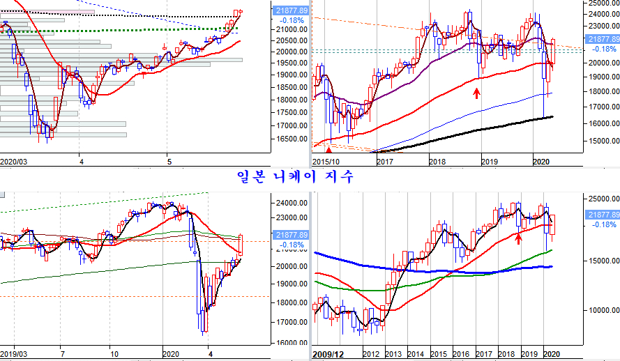 일본 니케이 지수는 이번주에만 7.31% 상승하면서 20주 평균에 이어 장기추세 기준인 60주 평균을 뚫었다. 다들 좋아하는 한일전 일패이다. 여하튼 한국은 파생상품의 영향으로 주가의 상승이 눌린 반면, 그런 영향이 없는 세계 증시의 강한 상승을 대변한다.