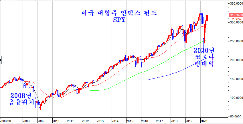 미국의 대형주 주가지수를 추종하는 인덱스펀드 SPY이다.