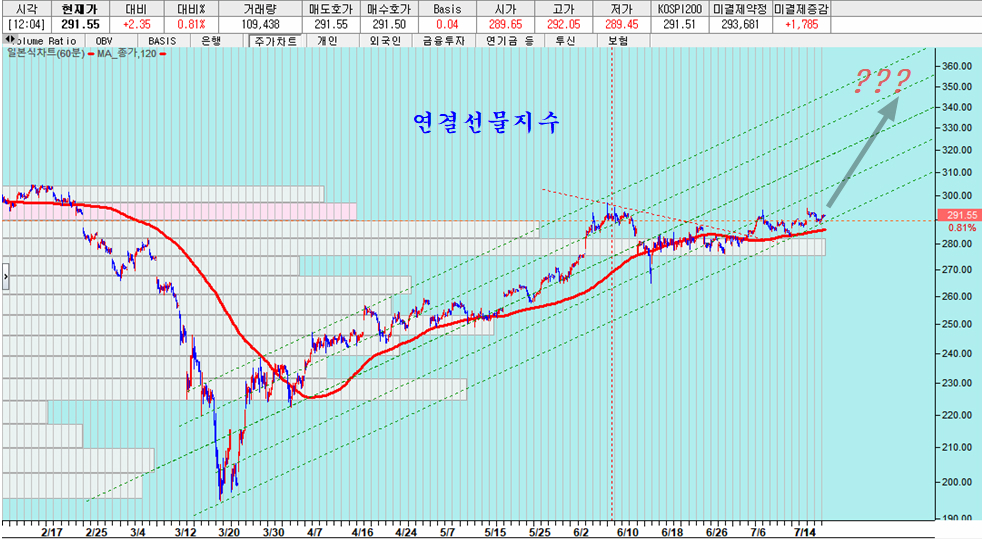 7월 17일은 미국, 유럽의 옵션 만기이고, 중국의 선물 만기일이다. 6월 22일부터 시작된 7월물 파생상품 게임이 마무리되고, 7월 20일부터는 8월물이 거래되면서 새로운 추세가 형성된다.