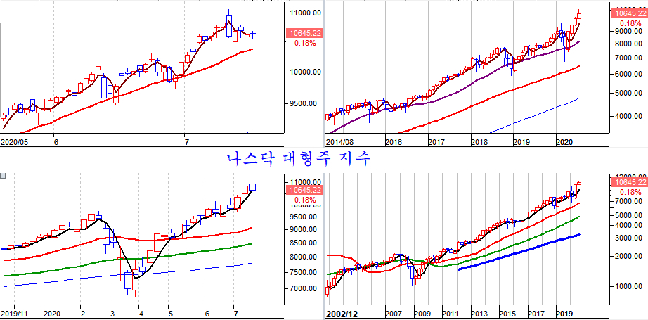 다만, 3월 만기에 급락했던 나스닥 대형주는 급등과 함께 10년 추세 채널의 상단에 접함으로써 향후 상승 여력이 제한되과, 또한 중기 장기 조정 가능성이 있다.