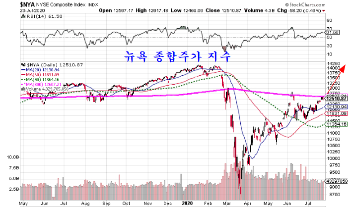나스닥 대형주는 천정권에서 하락의 모습을 하고 있으나, 기술주 비중이 작은 뉴욕종합지수는 약한 조정에 머물며 상승 추세의 모습을 하고 있어 이런 차이를 구분하여 대응하는 것이 필요하다.
