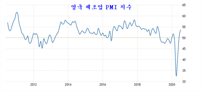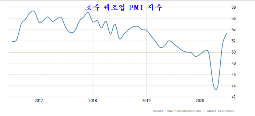 특히 원자재 생산을 하는 광산업 비중이 큰 호주와 영국은 제조업 PMI 지수가 53을 넘어서 강한 회복을 나타낸다.