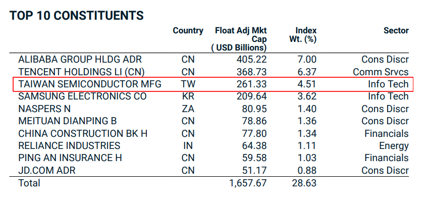 MSCI 신흥국지수 Top 10 포트폴리오 종목(6월 30일 기준)
