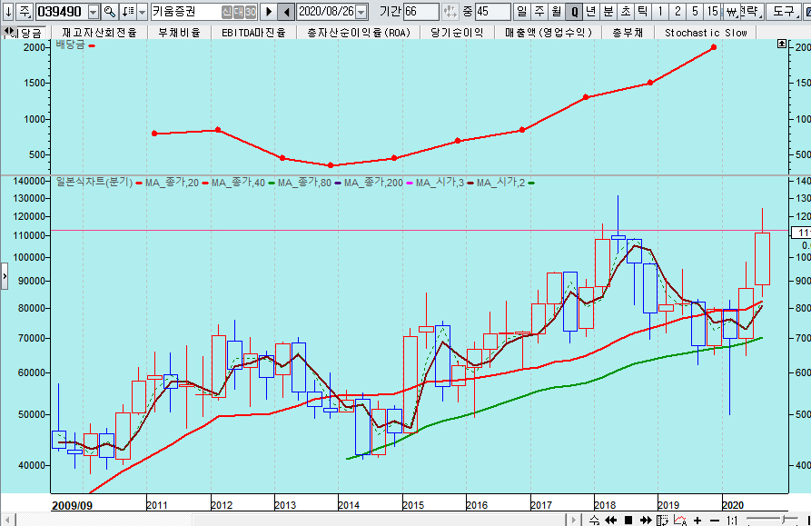 그럼에도 불구하고 증권사 주가는 저평가 영역에 머물러 거래대금 증가로 늘어나는 연간 이익 대비 주가수익 비율은 3배 수준에 머물러 제값의 1/5정도로 값싸게 거래될 뿐 아니라, 배당수익률이 5.0%가 넘는 기업이 많다. (대신증권은 (9.5% ,DB금융투자 6.6%)