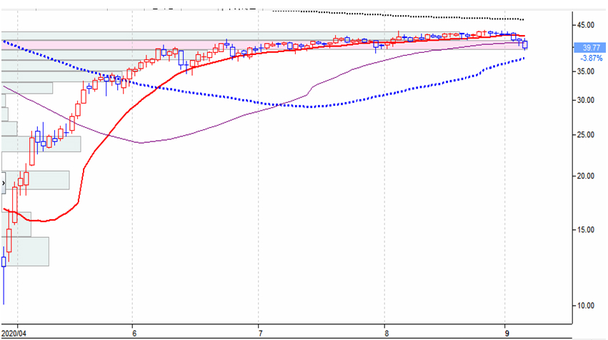 지난 3개월간 안정적인 모습을 보이며 배럴당 43$까지 오르던 원유 가격이 지난주 3일 연속 하락하며 40$대를 이탈하였다.