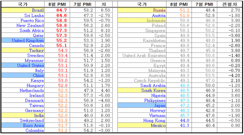 더구나 세계에서 가장 인구가 많고 따라서 건설업, 제조업, 원자재 수입, 무역 등에서 1위를 하는 중국이 7월과 8월 긴 장마를 벗어나면서 본격적인 건설 경기와 함께 제조업이 회복되고 있고 인도 역시 장마를 벗어나 제조업이 활발하다.