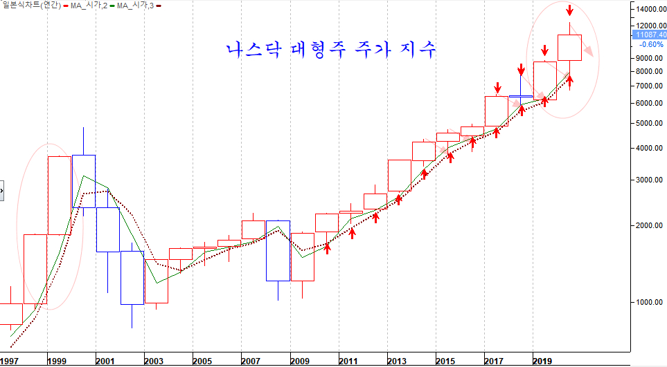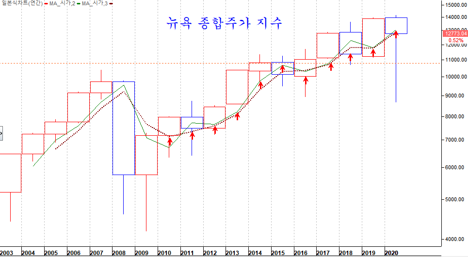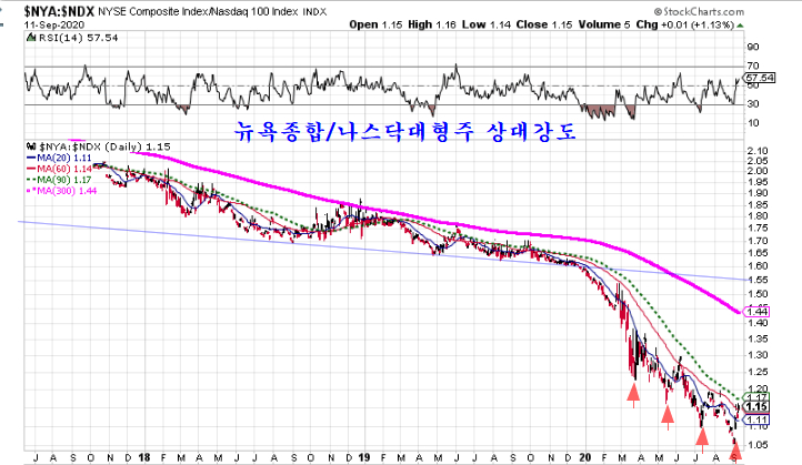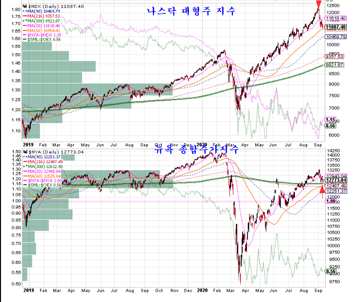 나스닥은 분명 과열을 나타내는 이격 과열을 나타내고 있으나, 구산업의 기업 중심인 뉴욕종합지수는 연중 저가권에 해당하는 위치이다. 따라서 업종에 따라 기업에 따라 과열된 기업이 있는가 하면 아직 저가권에서 상승을 준비하는 기업이 있다. .