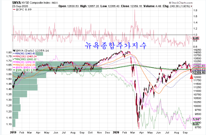 상품지수의 조정과 함께 최근 조정을 거치고 있는 뉴욕 종합 주가지수는 9월 첫주와 넷째 주 조정으로 20주 평균 지지권으로 조정을 받았다. 나스닥에 비해 원자재 가격 변동의 영향을 민감하게 받는 뉴욕종합지수는 달러 하락과 함께 상품가격이 상승한다면 본격적인 상승 추세가 나타날 수 있다.