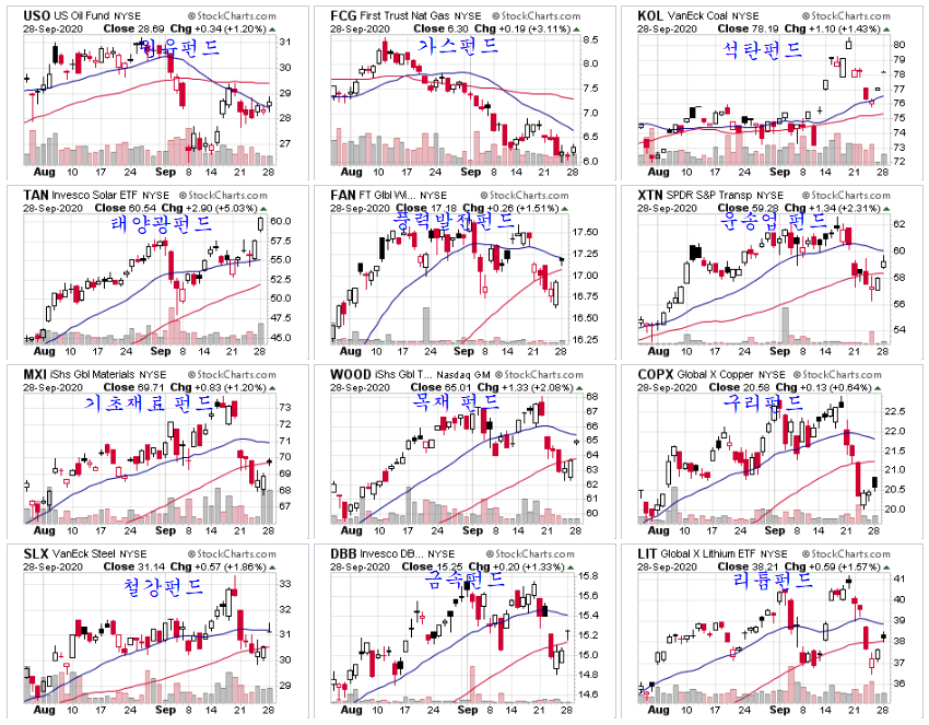 원유 가격은 0.87% 상승을 한 가운데 상승을 준비하고 있다. 미국이 유가 상승률을 통해 전세계 물가상승률과 전세계 중앙은행 통화정책을 관리(원유는 전년동기비 상승률을 관리하고 있는 듯 하다.) 하고 있는 모습을 보이는 가운데, 지난해 10월부터 연말까지 유가가 상승했다는 점에서 10월부터는 유가 상승률과 물가상승률을 유지한 채 유가가 상승할 수 있다. 여하튼 세계 제조업 경기 회복에 따른 원유 수요와, 라니냐에 따른 혹한의 겨울로 천연가스와 원유 수요가 증가할 전망이다.