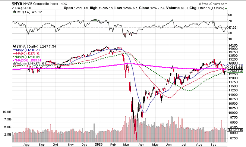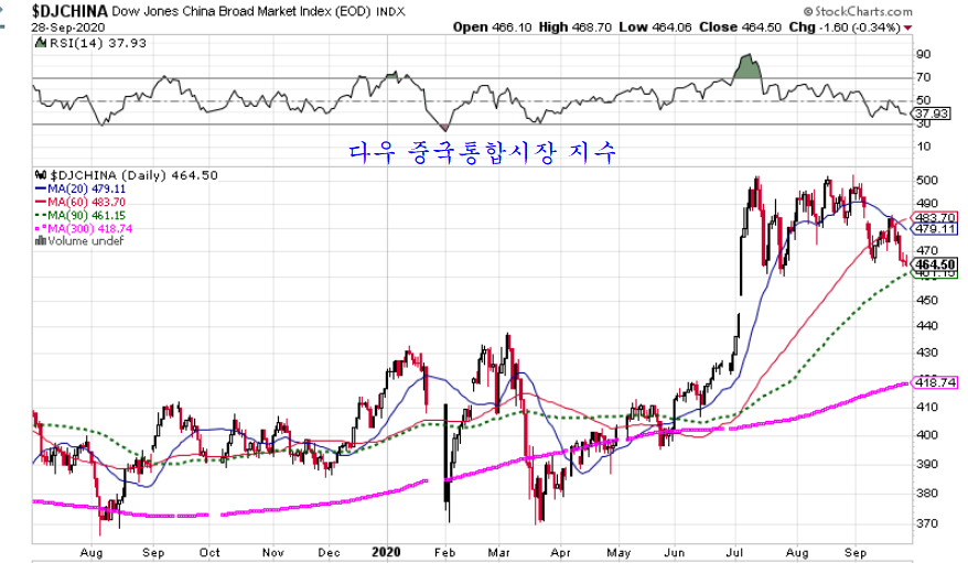 세계에서 코로나 국면을 가장 잘 통제하고 있고, 경제가 가장 빠른 속도로 호전되고 있는 중국통합시장지수는 가장 더딘 출발을 보이고 있다. 7월 장기 저항을 넘어서며 급등하였으나 3개월 여에 걸쳐 박스권 등락을 하면서 매물을 정리하고 매집을 강화한 가운데 20주 평균 지지권이다. 4분기 강한 상승을 하며 세계 증시 상승을 선도할 가능성이 있다.