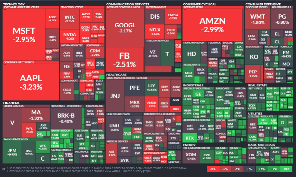 그러나, 지수의 하락에도 불구하고 시가총액이 면적 비례로 그려진 섹터별 주가 상승 지도에서 마치 태극을 그리며 하락하는 대형주와 상승하는 소형주로 엇갈린 모습이다.