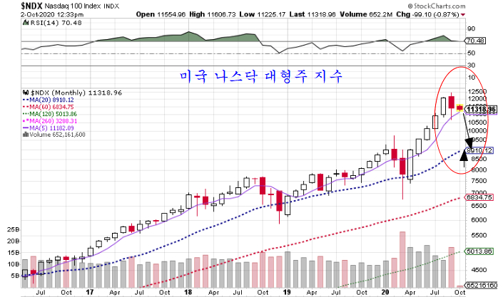 국내 투자자들의 투자가 많았던 나스닥 대형주는 9월 하락에 이은 반등에 이어 4분기가 시작되면서 재차 하락이 이어지는 모습이다.