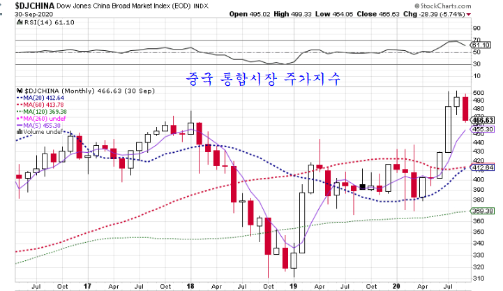 유럽을 대표하는 독일 DAX 지수($dax)나 신흥국을 대표하는 중국 통합시장 지수($djchina)도 3분기 제조업의 더딘 회복을 반영하며 정체함으로써 이격이 크지 않은 가운데 4분기 들어 상승이 준비되어 있다.
