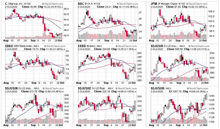 4분기 첫주말 미국 시장은 이런 시장의 움직임을 나타냈다. 뉴스에서는 트럼프 코로나 확진이 하락의 이유인 양 말하고 있으나, 시장은 실적에 비해 앞서 움직여 고평가 된 섹터가 하락하고, 경기 지표 회복으로 경기 호전이 예상되는 업종이 올라 경기의 움직임을 반영하고 있다.