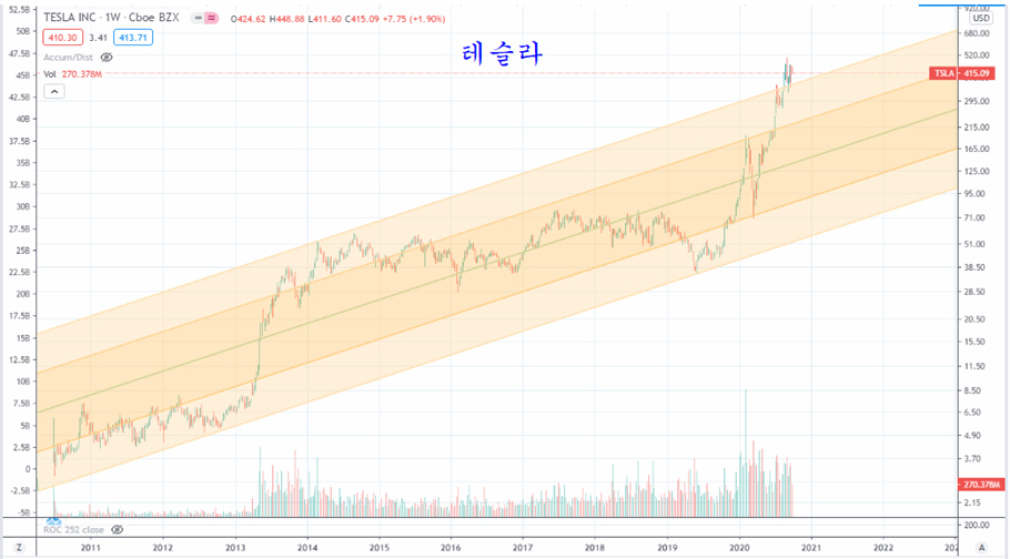 나스닥 대형주가 9월 월봉을 하락으로 마감한 이후 하락 추세 전환이 예상된다. 이미 10년 이상 장기로 오르면서 주가가 성장 속도를 넘어 과속 상태이기 때문이다. 과속하다 카메라 앞에서 브레이크를 밟게 되는 나스닥 첨단주를 버리고 코로나로 멈춰있다 시동을 걸고 출발하는 에너지 기업을 사라.