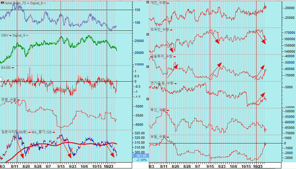 이런 매도 물량은 외국인의 선물 매도, 증권의 선물 매수를 동반한 거래로 프로그램 차익 거래를 나타낸다. 8월 중순과 9월 중순에 이어 10월말 세 차례 프로그램 매도와 함께 주가가 하락했으나, 프로그램에 기인한 하락은 프로그램 매수와 함께 쉽게 회복되는 특성이 있다.