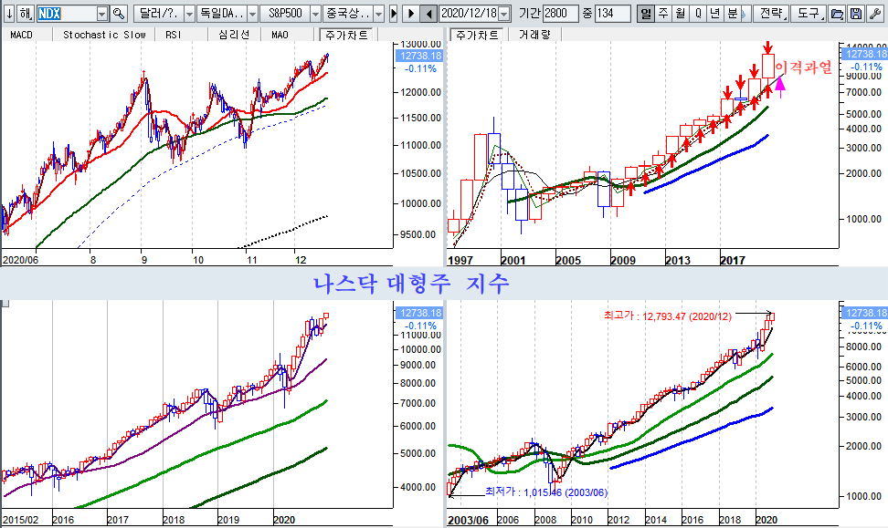 이처럼 유럽과 중국 증시가 상승을 억제하며 상승 준비를 하는 대신, 미국은 시가총액이 큰 첨단 기술주를 바탕으로 연간 상승이 매우 크게 나타나 내년 이격 조정의 기대 폭이 크다.
