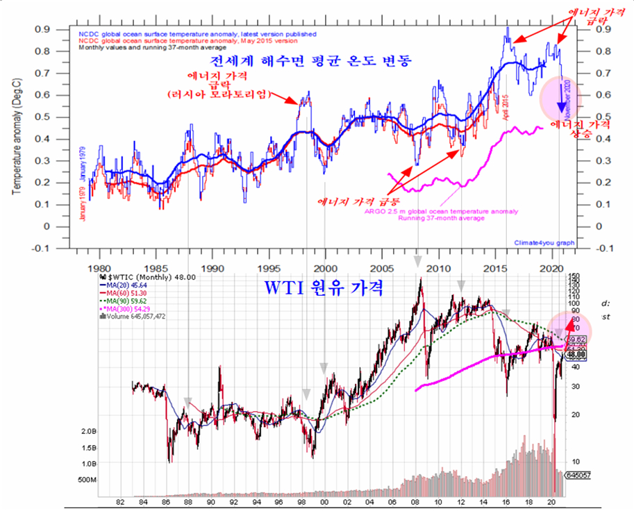 따라서 지구 해수면 온도가 하강하고 있는 현재의 상황과 내년 전세계 건설 경기 회복을 감안하면 실제 원유가격 상승률은 위의 계산보다도 더욱 빠르게 증가할 수 있다.