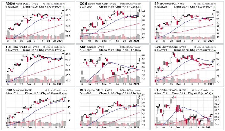 아울러 에너지를 대표한 종합 석유 기업과 셰일 석유 기업, 파이프라인기어업 및 석탄 기업의 주가가 강세를 보이고 있고, 아울러 화학업종이 초 강세이다.