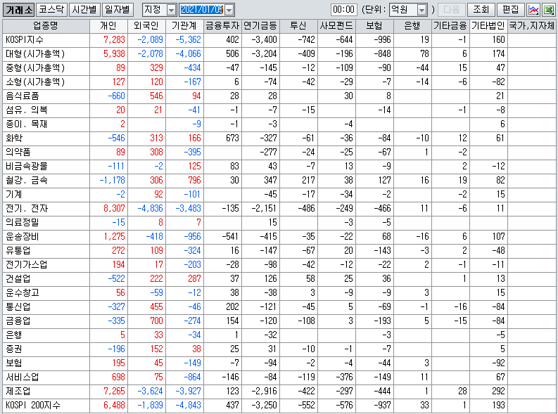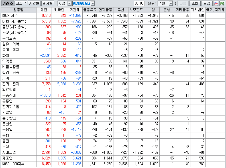 다음은 새해 들어 4일간 업종별 주체별 주식 순매수 동양이다. 어떤 업종을 팔고 어떤 업종을 사는지 변화를 점검해 보면 좋다. 새해 외국인이 순매수를 늘리는 업종을 주목하여 보라.