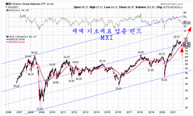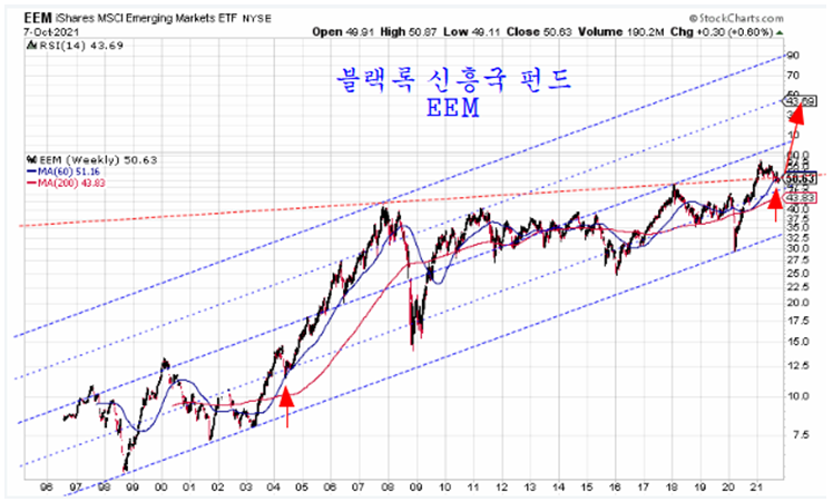 쥬라기: 블랙록의 신흥국 펀드 EEM과 블랙록의 기초재료 펀드 MXI는