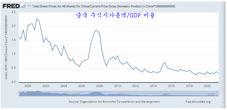 쥬라기: 중국은 주식 시가총액을 국내총생산 GDP로 나눈 비율이 10년간 줄었죠.