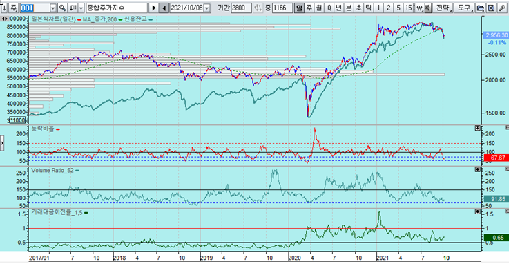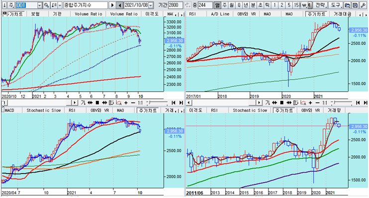 쥬라기: 종합주가지수는 이번주 조정이 나타나면서 주봉을 기준한 60주 평균에