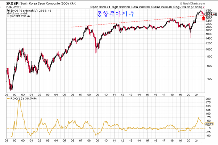 쥬라기: 종합주가지수는 2007년 고점과 2011년 고점을 잇는 추세선을 기준하여