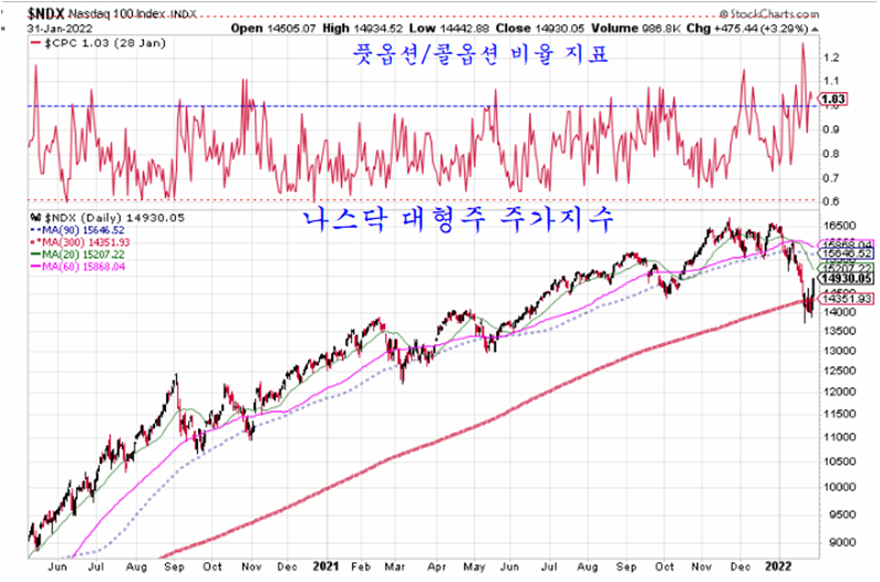 미국 뉴욕 주식 시장은 지난해 연말 과도한 이격을 발생하였기 때문에, 연초부터 이격 조정이 풋옵션 투기와 함께 나타나면서 급격한 하락을 하였으나, 주가지수가 이격 조정의 기준인 연봉 시가3선(주봉 60주 평균, 월봉 20월 평균)까지 조정이 나타나면서 지난 주말에 이어 이번주 초 상승이 이어지고 있다.