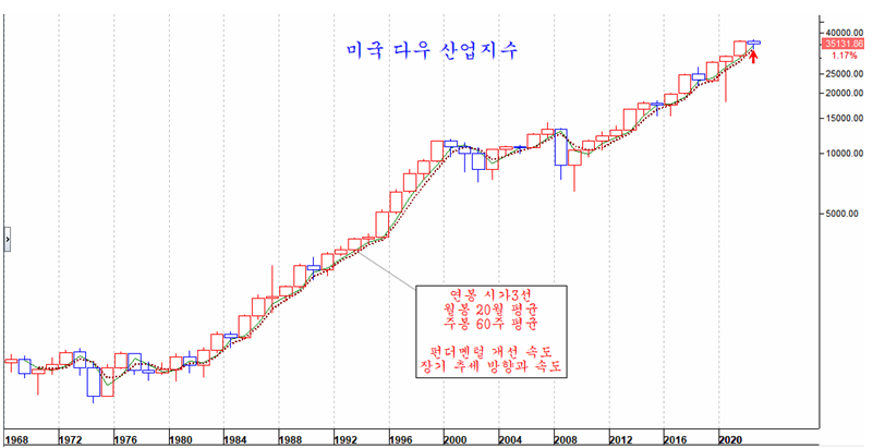 주가는 경기나 기업 실적과 같은 펀더멘털을 원인으로 하여 급격한 등락을 하지 않는다. 경기나 기업 실적 또는 기업 실적에 영향을 미치는 악재가 주가에 반영되는 속도는 60주 평균이나 20월 평균 또는 연봉 3년 평균의 방향과 속도에 영향을 미친다. 따라서 펀더멘털이 개선되는 변화는 60주, 20월, 연봉 3년 평균의 방향과 속도로 나타난다. 따라서 펀더멘털에 포커스를 맞추어 투자하는 투자자는 변동을 거르거나 오히려 이용하며 이런 추세를 따라 주식을 보유하면 좋다.