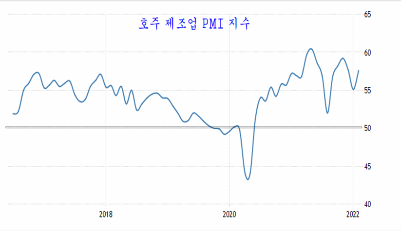 다음은 제조업 PMI 지수를 일찍 발표하는 호주, 일본, 미국, 유럽 등 주요 선진국의 제조업 PMI 지수이다. 지금 주요 선진국의 제조업은 어떤 국면인가?