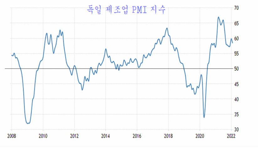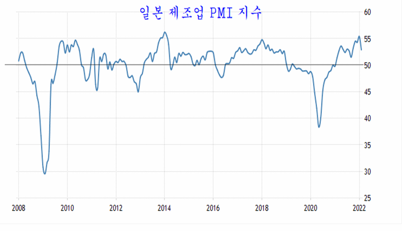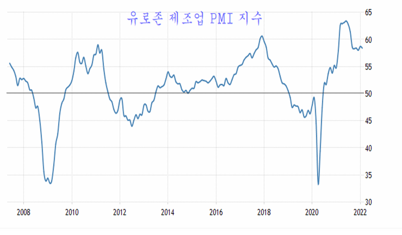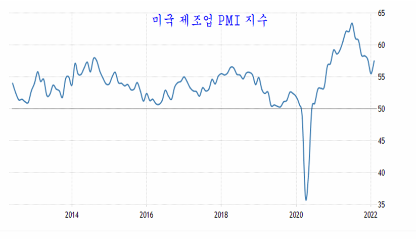 그것은 기업의 실적의 바탕이 되고 성장의 발판이 되는 경기이다. 경기는 단기 등락을 만들지 않지만 장기적인 추세의 방향과 속도를 결정하므로 우량하고 경쟁력이 있는 기업을 오래 버틸 수 있는 여유 자금으로 매입한 사람이 가장 주목해야 할 변수이다. 따라서 미국의 금리 인상, 러시아의 우크라이나 침공의 한복판에서 투자자가 주목해야 하는 것은 '세계 제조업 경기의 지수가 지금 어떤 상태인가'이다.