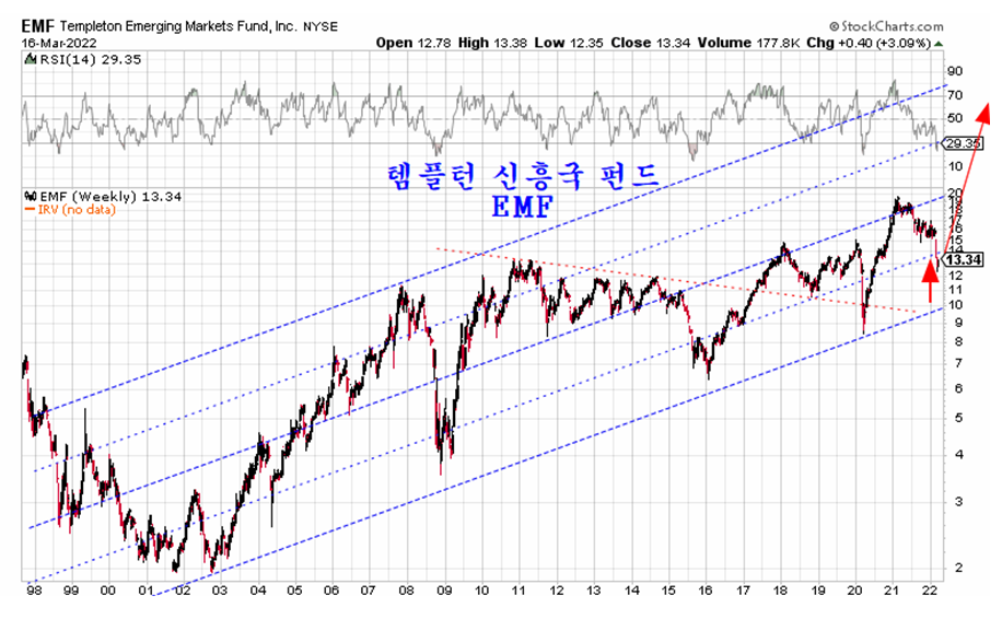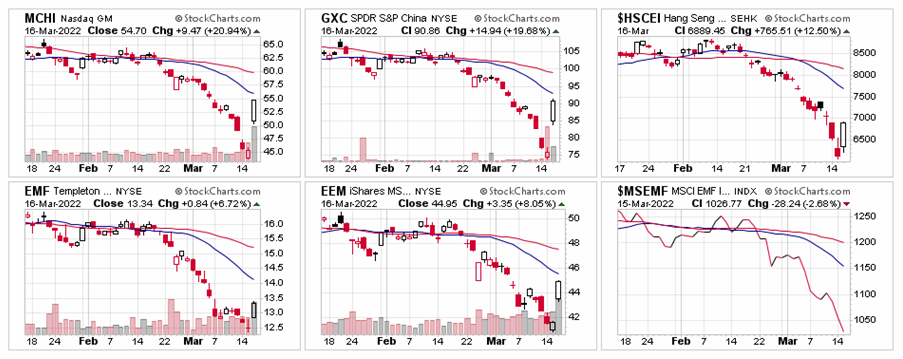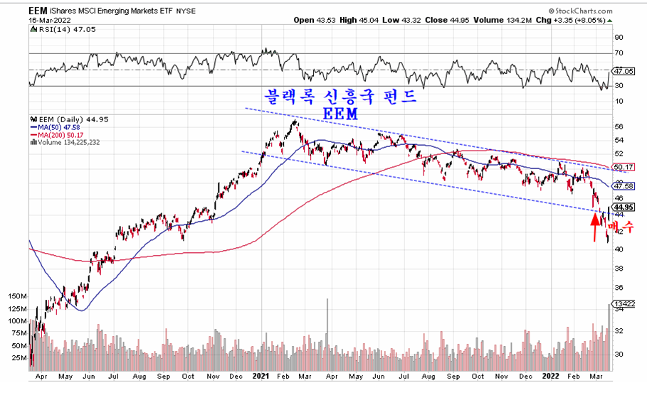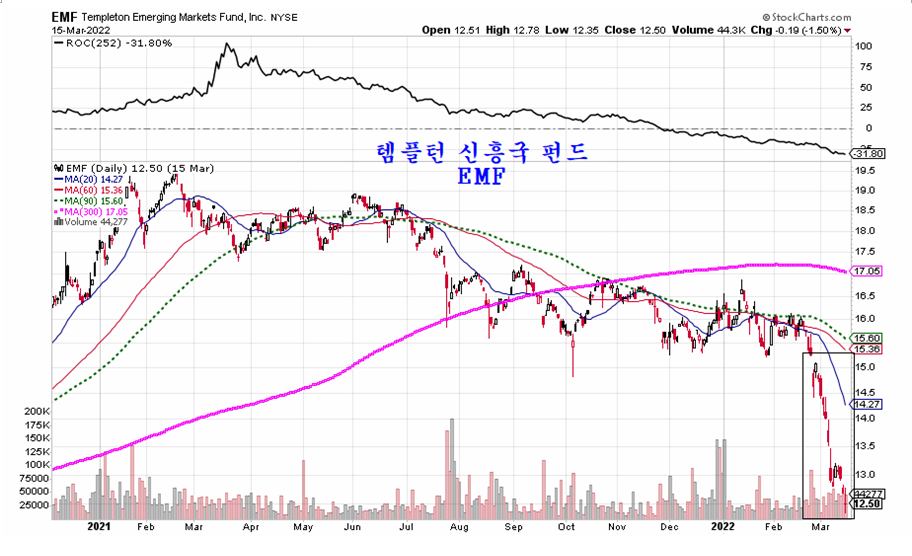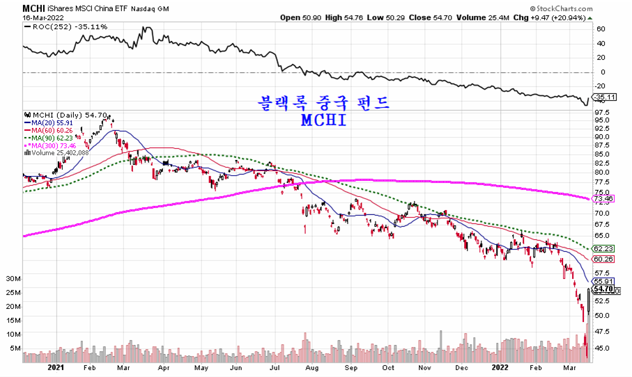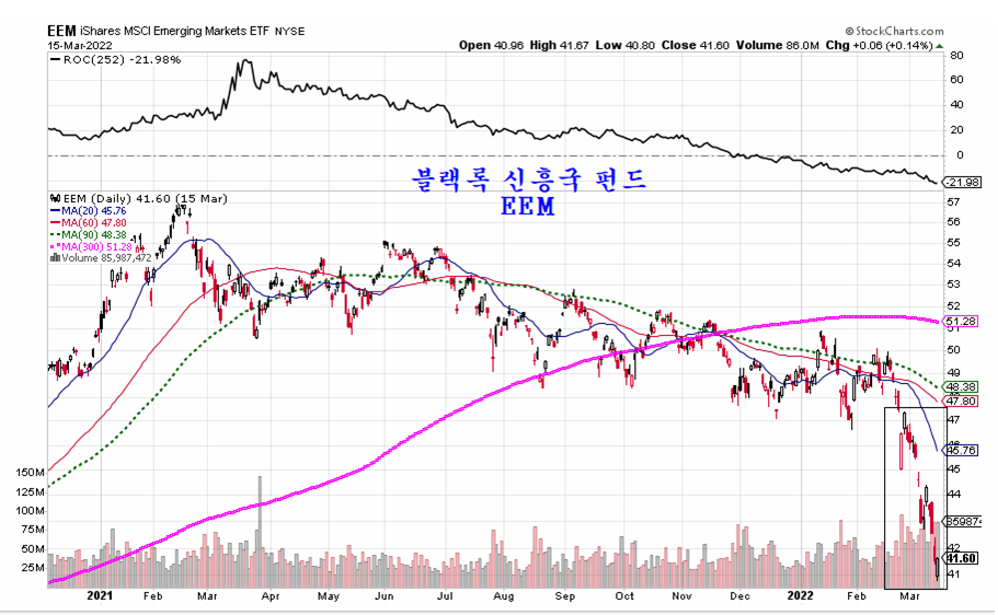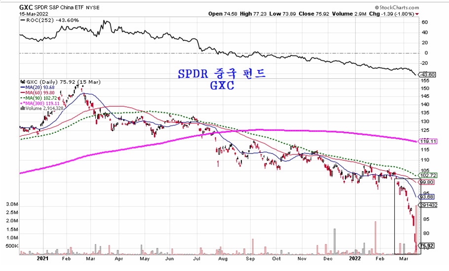 2년이 지난 2022년 3월 선물 옵션 만기를 앞두고 똑 같은 상황이 중국 시장에서 진행되고 있다. 2021년 2월을 고점으로 지루한 하락을 거쳐 상승이 준비되던 중국의 주가와, 중국 주가의 영향을 받는 신흥국 펀드가 러시아의 우크라이나 침공을 핑계 삼아 파생상품 시장에서 매우 강력한 게임이 전개되면서 급락이 나타났다.