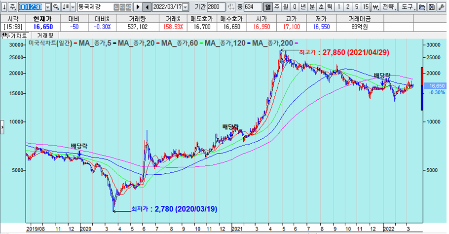 이때 추가 하락을 두려워하지 않고 저가라고 판단되는 곳에서 우량 주식을 사서 보유한 경우에는 대단히 큰 이익이 되었다. 1년 만에 동국제강은 최저가 대비 1000%가 올랐고 한화솔루션, 금호석유 등 이전부터 우량주가 모두 500% 이상 오르는 강한 상승이 전개되었다. 주가 급락 이전부터 기업 펀더멘털을 기준하여 꾸준히 비중을 늘리라고 했던 기업들이다.