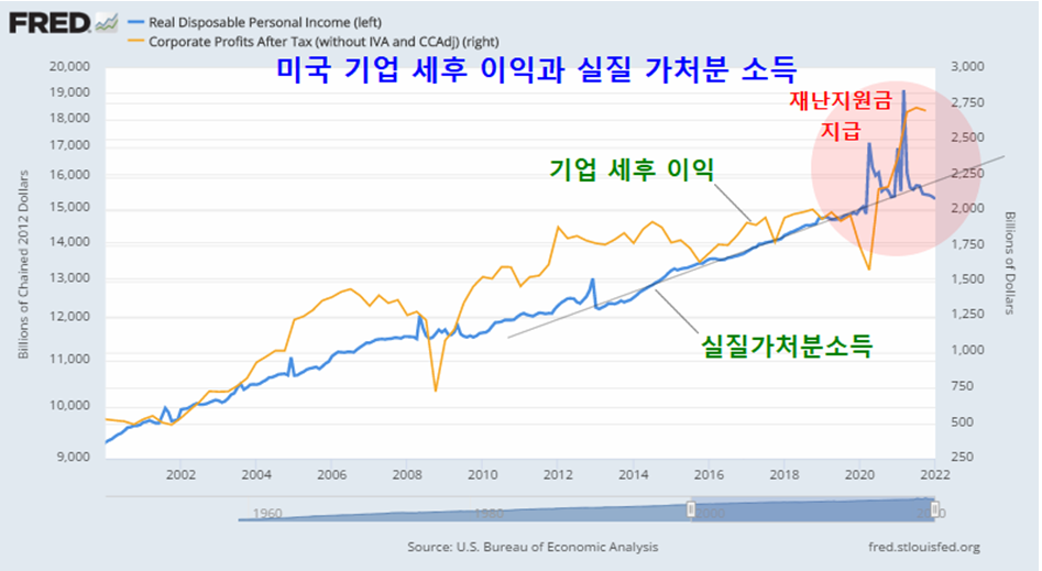 반면, 물가가 빠르게 오르면서 실질 가처분 소득은 감소하고 있어 일부 가처분 소득에 관련된 소비 관련 업종은 주가 수준에 따라 조정을 받을 수 있다.