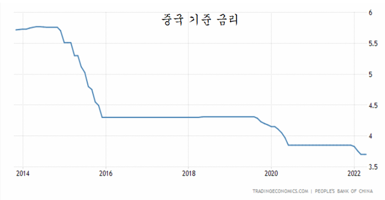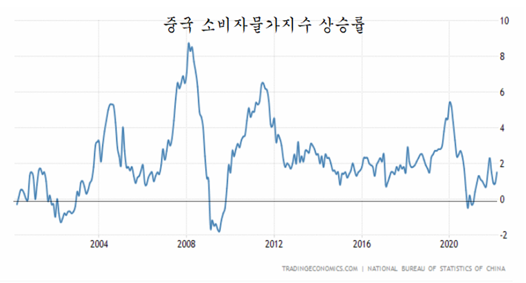 그러나 중국은 코로나에도 불구하고 통화 긴축 기조를 유지하였고, 특히 2021년에는 부동산 개발 기업들의 과도한 부채를 줄이기 위해 강력한 긴축 기조와 함께 통화를 긴축 운용함으로써 경기 위축과 주가 하락 속 물가가 안정되어 있다.