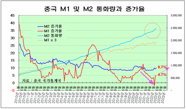 따라서 2020년 이후 돈을 풀었던 미국이 주가가 강하게 오르며 세계 시장을 리드하였다면, 2022년은 금리를 낮추고 통화를 늘리며 규제 완화와 경기 부양 정책을 펴는 중국의 주가가 오르면서 세계 시장을 리드하게 될 것이다.