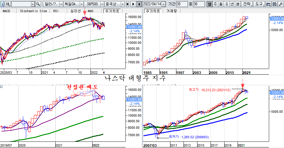 이에 따라 미국은 통화 팽창과 코로나 팬데믹의 수혜를 입었던 비대면 서비스와 첨단기술주의 하락이 시작되고 있다. 단순한 조정이 아니며 장기 추세 하락의 시작이다.