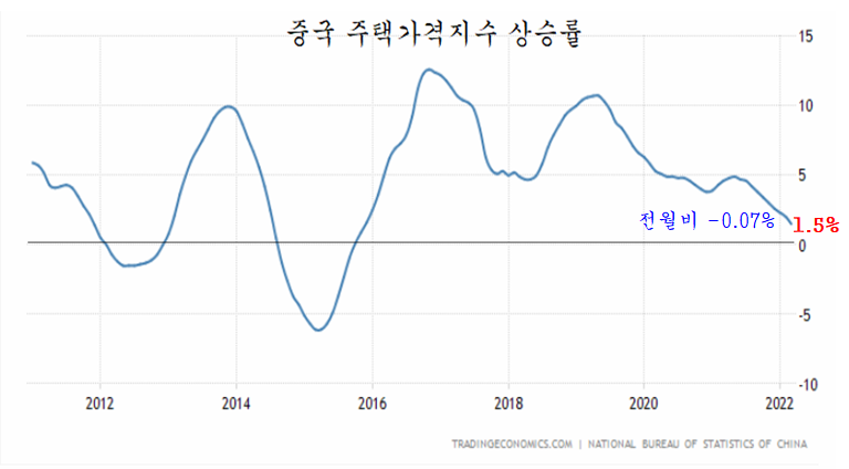 또한 통화 팽창과 저금리의 영향에 주택 수급까지 악화되며 가파르게 오르는 미국의 주택 가격과 달리 중국의 주택 가격은 규제 강화와 통화 긴축으로 인해 주택 가격은 오히려 전월비 하락 추세가 이어지고 있다.