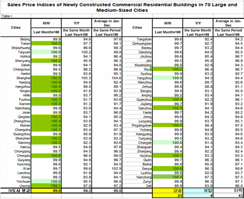 쥬라기: 부동산 대책을 발표 후 첫달인 10월은 70개 도시 중 4도시가 상승했지만